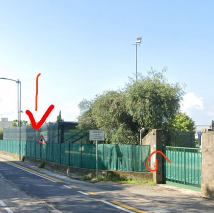 Alternative 2: Gerade wenn du viel oder schweres Gepäck dabei hast, kann es Sinn machen, dass du nicht den Parkplatz-Eingang benutzt (du siehst oben, der Weg ist "recht weit"), sondern vorne am Eingangstor zur Pergolana direkt rechts auf dem breiten Seitenstreifen problemlos parkst, ausräumst (gelber Schlüssel um das Tor zu öffnen) - und das Auto erst später auf den Parkplatz fährst (siehe oben).